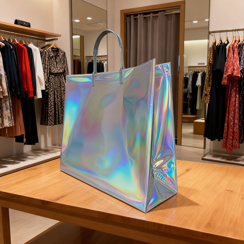 魅惑的な視覚効果: 虹色の仕上げとダイナミックなホログラフィック パターンが光と動きに反応し、常に変化するスペクトルを作り出します。商標やパターンのカスタマイズ可能な印刷。どんな環境でも目立つユニークな視覚的魅力。プレミアム素材構造:耐久性のあるレーザーフィルムラミネート加工を施した高品質プラスチック。傷がつきにくく、耐水性のある表面コーティング。ハンドルとストレスポイントを強化して耐久性を向上。重量がかかっても構造の完全性を維持します。機能強化: プラスチック素材と新技術により、内容物を防水保護しながら、表面のお手入れが簡単になります。最大耐荷重は10kgで、快適なグリップも提供します。ブランド強化価値: 忘れられない開梱体験を生み出し、優れた外観によりソーシャルメディアでの共有と認知度を促進し、繰り返し使用することでブランド露出を拡大し、ハイエンドブランドの認知度を確立します。環境上の利点: 再利用可能な設計により、パッケージの廃棄物が削減されます。耐久性のある構造により長寿命が保証されます。